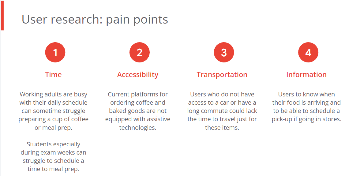 Based off the findings through user interviews and surveys, our two primary user groups we identified were working adults and students who would not have time in the morning due to busy schedules.