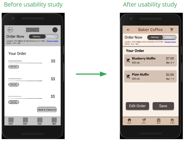 Design a mobile ordering application for Baker Coffee that allow users to easily complete user tasks efficiently.