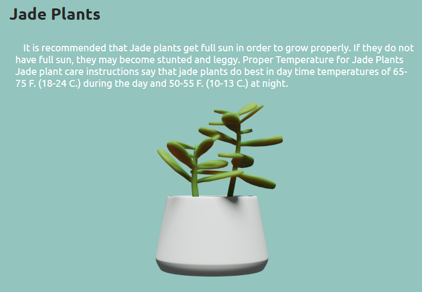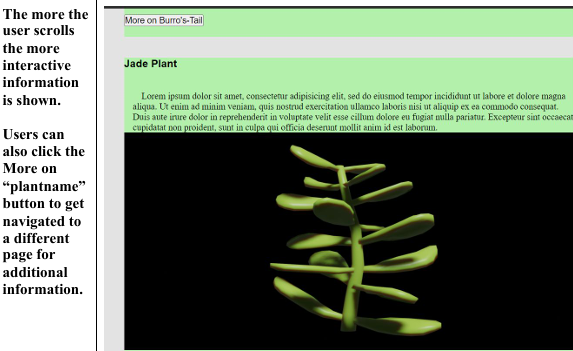 Our main design focus was a highly interactive and responsive experience based off our user’s cursor movements. We decided to create our own 3D plant models to help enhance the overall experience of our website.