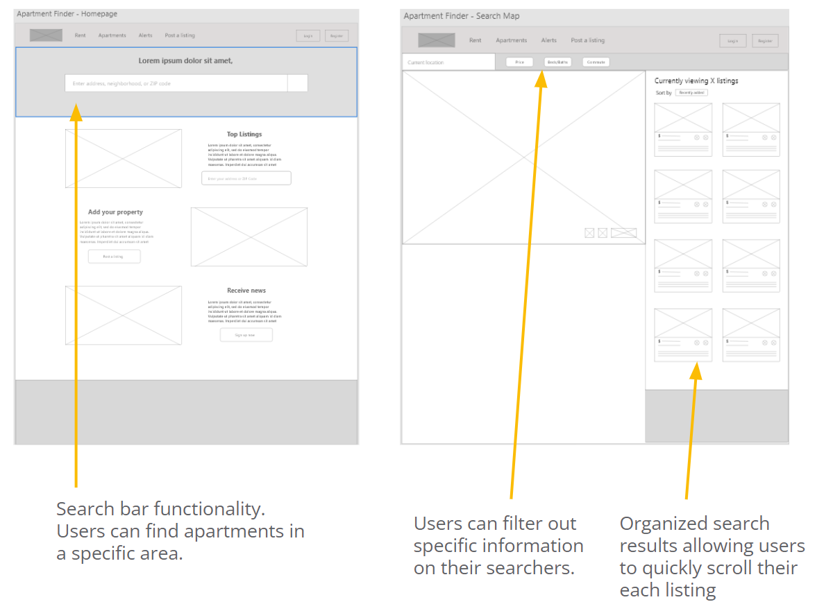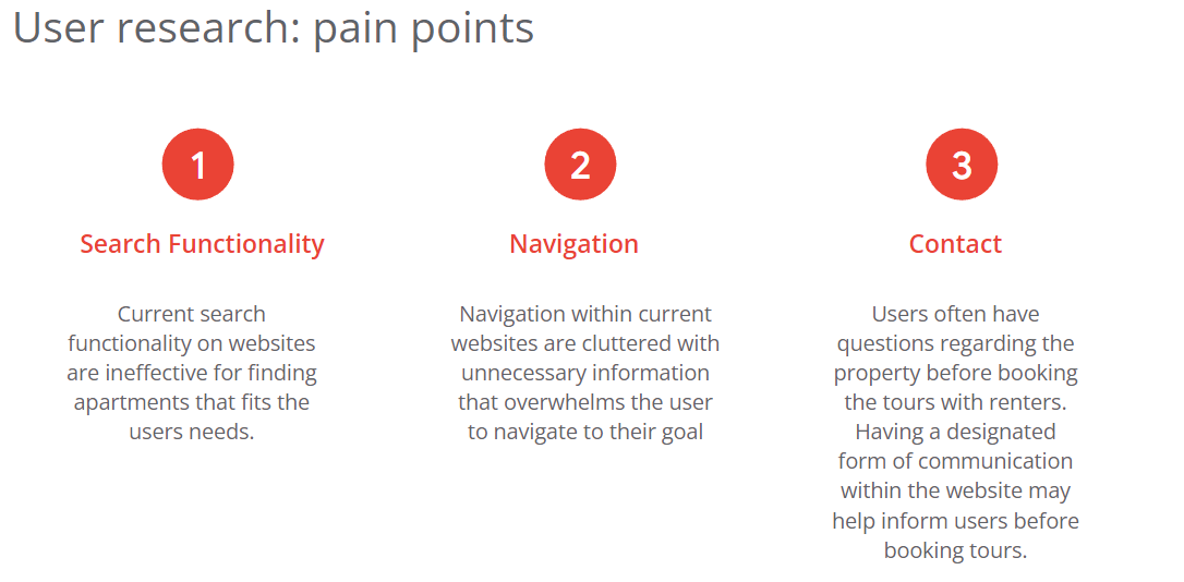 I conducted user interviews to further understand our targets users and their needs. Many of our target users, generally college students tend to find the process of apartment searching very stress. In adjacent to their studies, students would have to find apartments during exam season which adds additional stress.