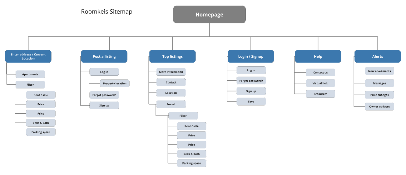 We started off by designing a sitemap for our website's main functionality to address these pain points.